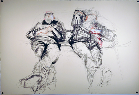 Graphite, charcoal, conte on buff BFK Reeves paper